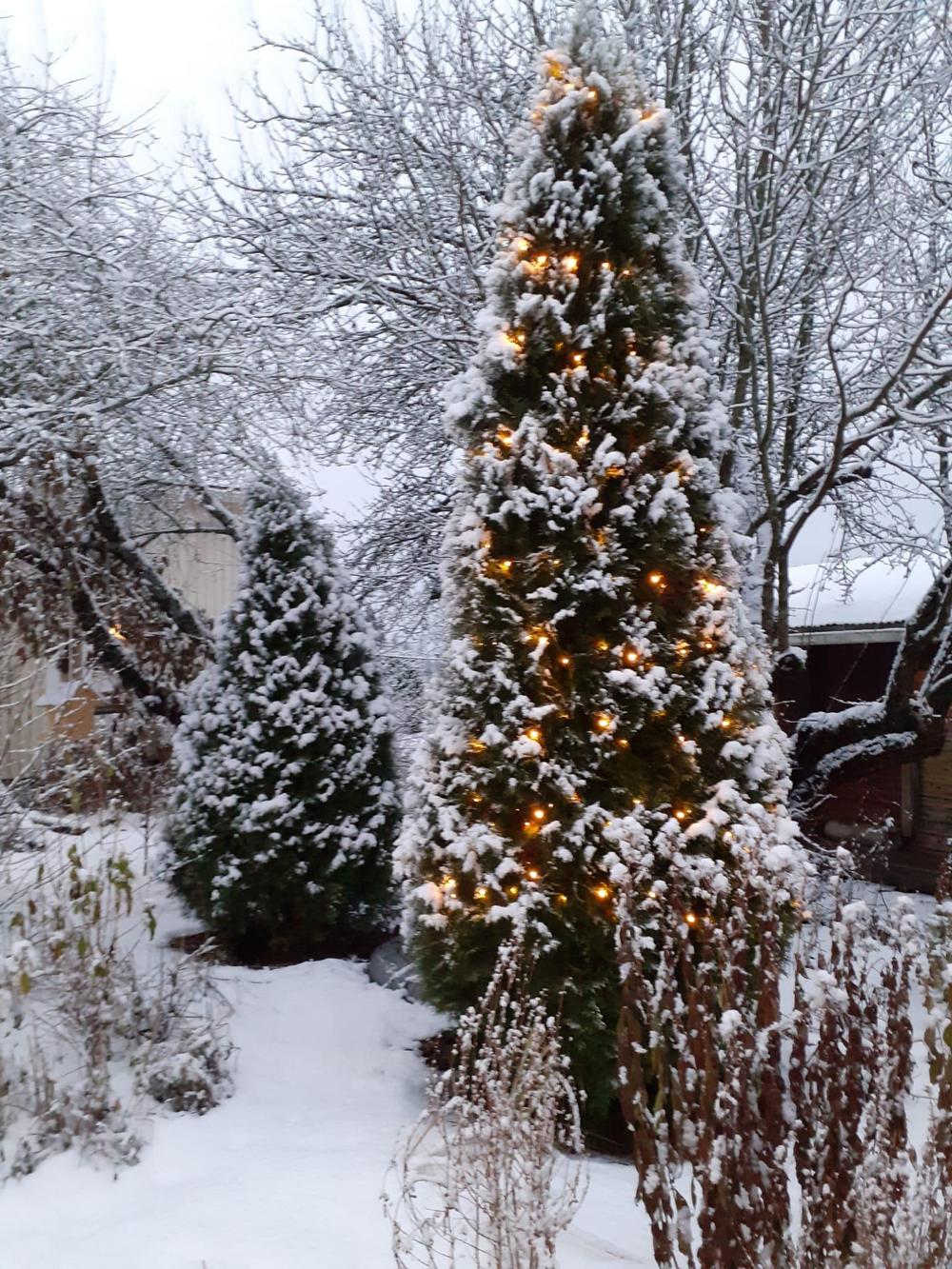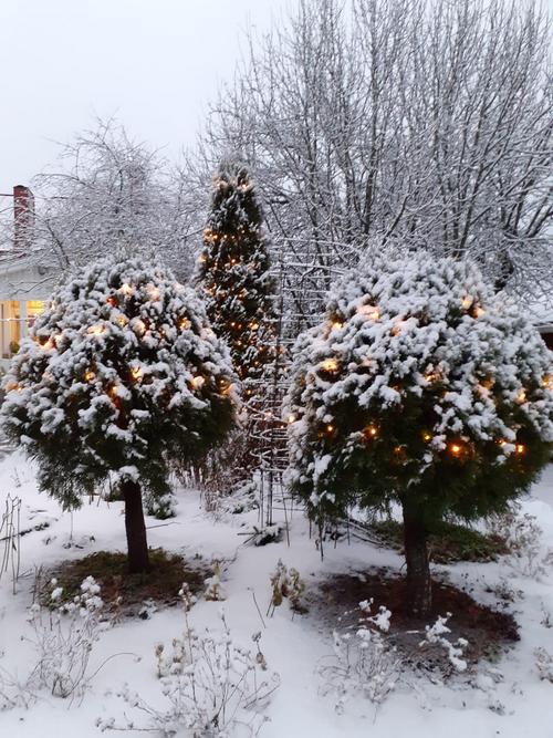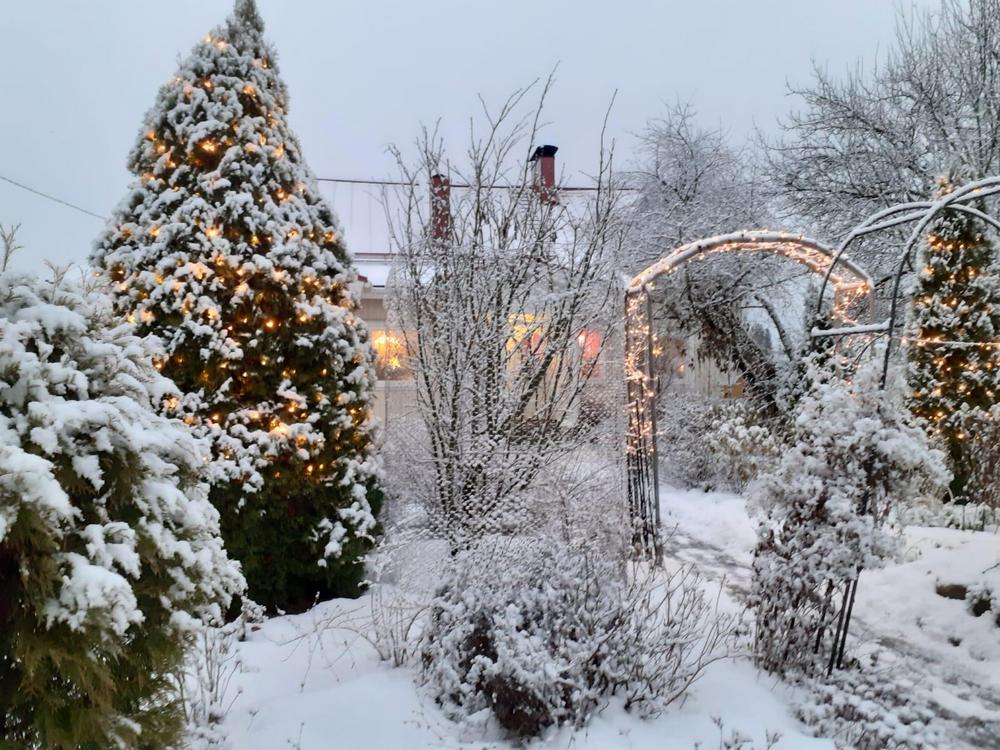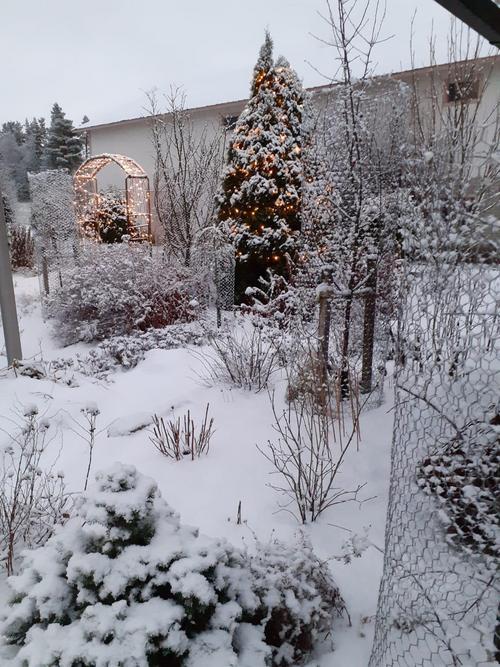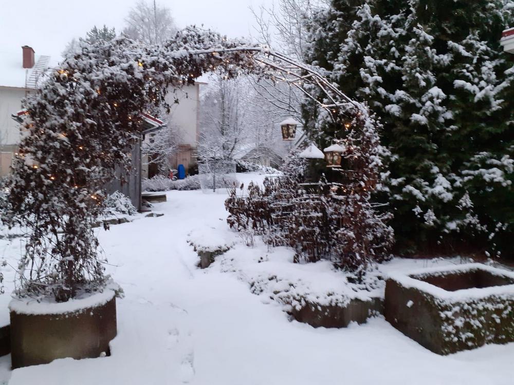 Kesän muistoja, syksyn tunnelmia ja ensilumen hetkiä Marittan puutarhasta